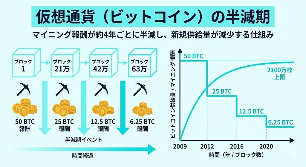 約4年ごとに「半減期」があり、新規発行量が半分になります。