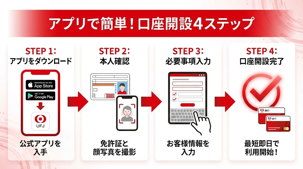 三菱UFJ銀行の口座開設は、スマホで最短10分で完了します。