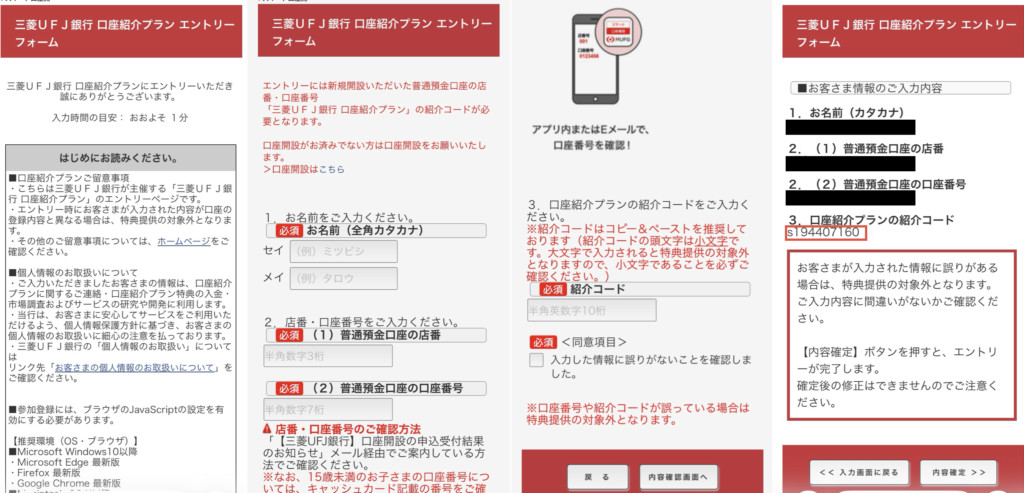 三菱UFJのアプリをインストール済みだと、エントリーリンクがアプリにリダイレクトされてしまうことがあります。